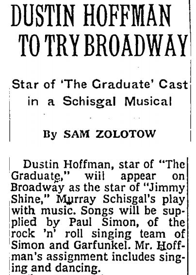 In 1968 (May 20th) an article was published in the New York Times that a new musical would come to Broadway, starring Dustin Hoffman. Music would be written by Paul Simon.