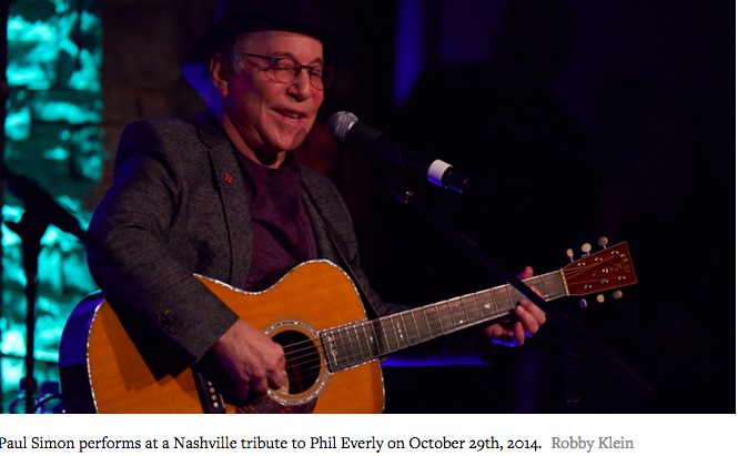 Paul Simon performed an 8 song set at the show honoring Phil Everly, on October 29, 2014: