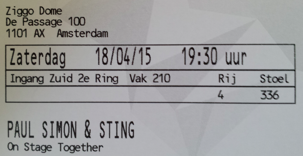 All we can now say is ” Thank you Sting and Paul Simon ” for a wonderfull tour and show.