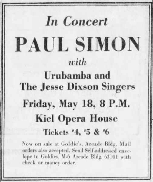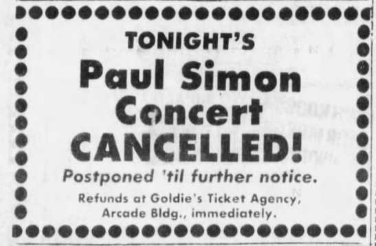 In 1973/1974 Paul Simon toured around the world to promote his album “There Goes Rhymin’ Simon”. The tour started in the US on May 4th in Hartford (see the list here)