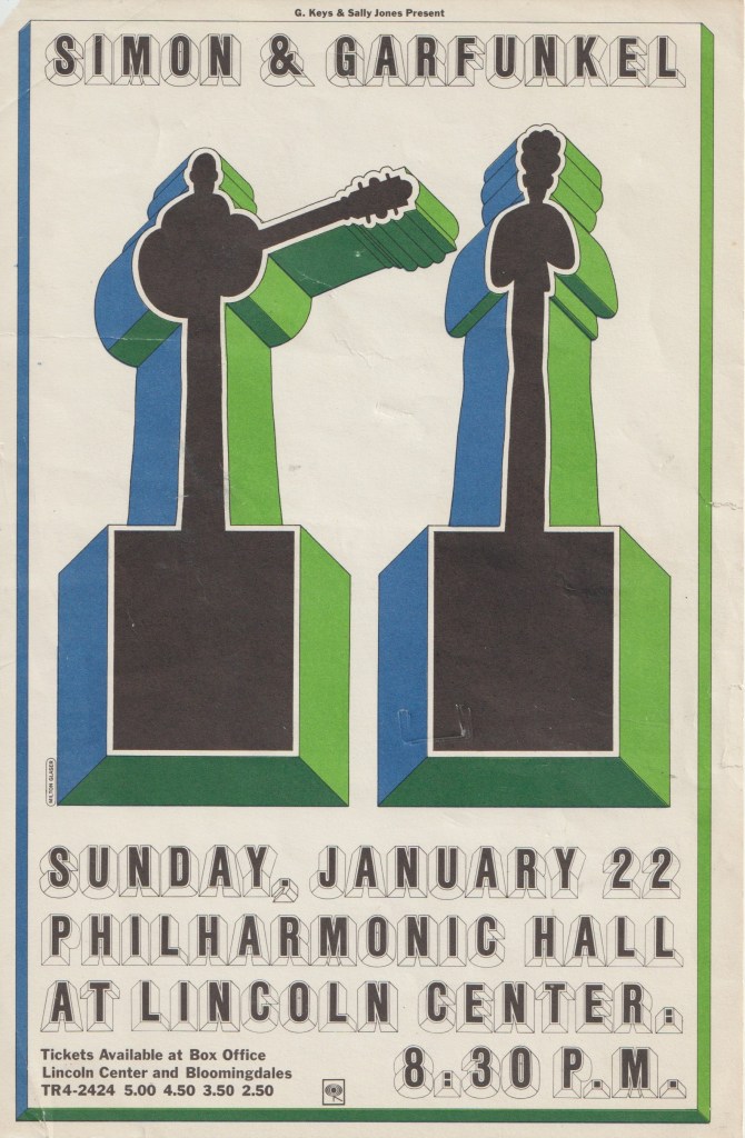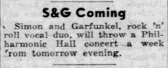 On January 22nd 1967, 59 years ago today, Simon & Garfunkel played at the Philharmonic Hall in New York City. The Daily News reported a week earlier that the “Rock ‘n’ Roll’ vocal duso would be coming. There was some discussion too about the fact that some asked themselves that a symphony hall should be used for concerts (“Are these still concerts?” The New York Times wondered on the 22nd in an editorial).