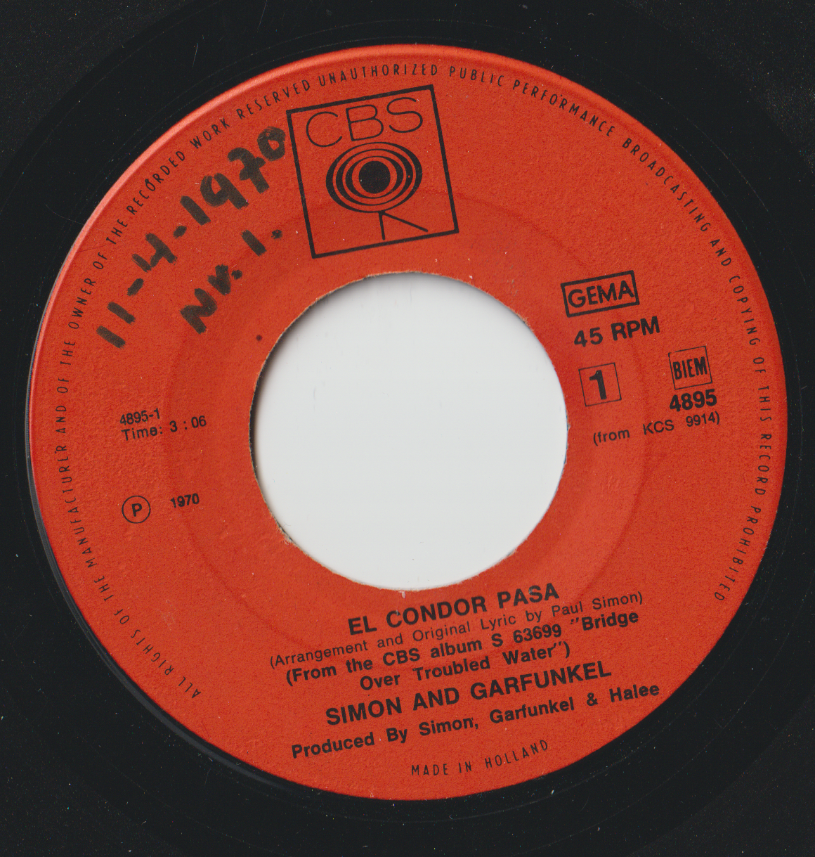 Simon & Garfunkel’s El Condor Pasa / Why don’t your write me was a major hit in the Netherlands. I remember playing it 100times, it drove most of the family nuts. I was a fan and hooked to the music of this great duo.