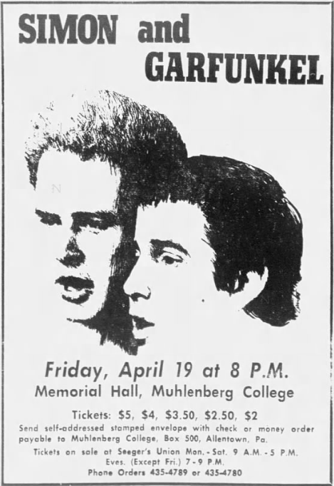 Muhlenberg’s Memorial Hall far from ideal as a concert hall, and Simon and Garfunkel were considerably hampered by poor acoustics that muffled their lyrics, blurred their melodies and took the edge off Simon’s exceptional virtuosity on the guitar.