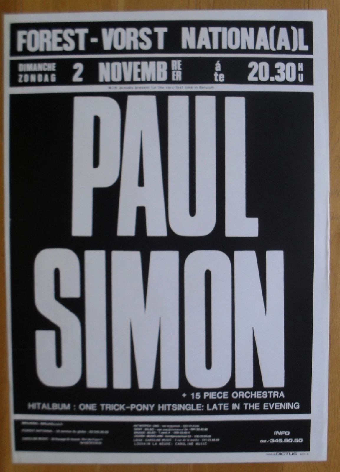 While we couldn’t get tickets anymore for his Amsterdam concert, friends and me went to Belgium’s Brussel. We saw an amazing show of the One-trick Pony tour. With a great backing band (with 4 horn players during “Have a good time” and “Late in the evening”). Paul Simon went through all the hits and his new album “One-trick Pony”. When the show was over he came back on stage and jumped on Richard Tee’s electric piano and thanked us all.