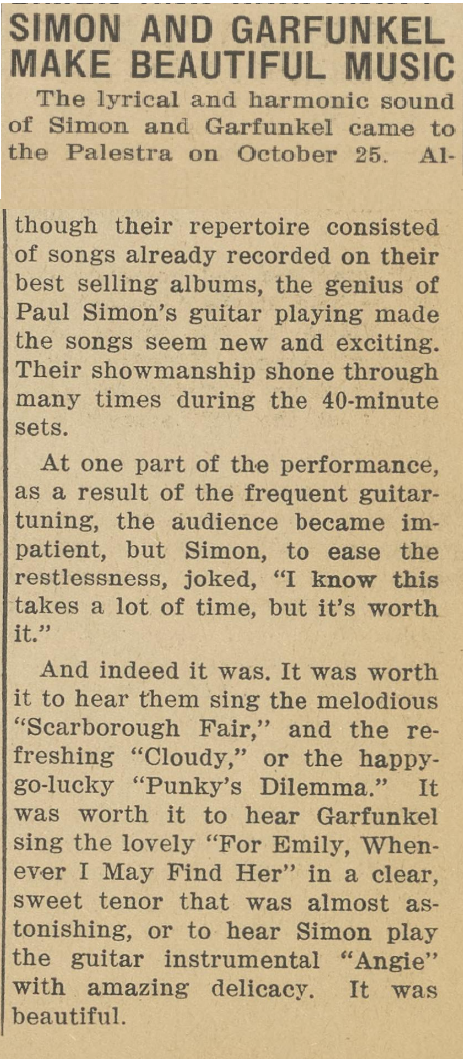 As you all know finding information about the concerts Simon & Garfunkel gave is one of the main focusses of this site.