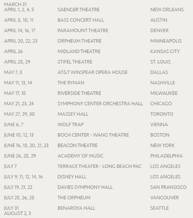 The dates/citie/venue known so far are: