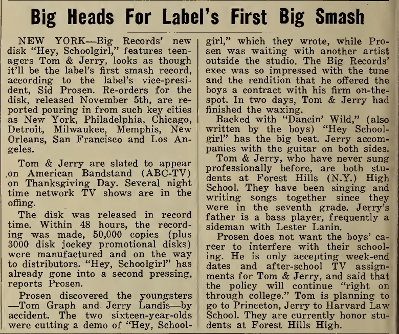 Early days are difficult to find information about. In 1963 months before they would record their lp ” Wednesday Morning 3 A.M.” for Columbia Records they hang around Greenwich Village in New York City and sang in clubs, like The Cafe Wha or Folk City. But when and whereexactly? And now at long last we have one date.