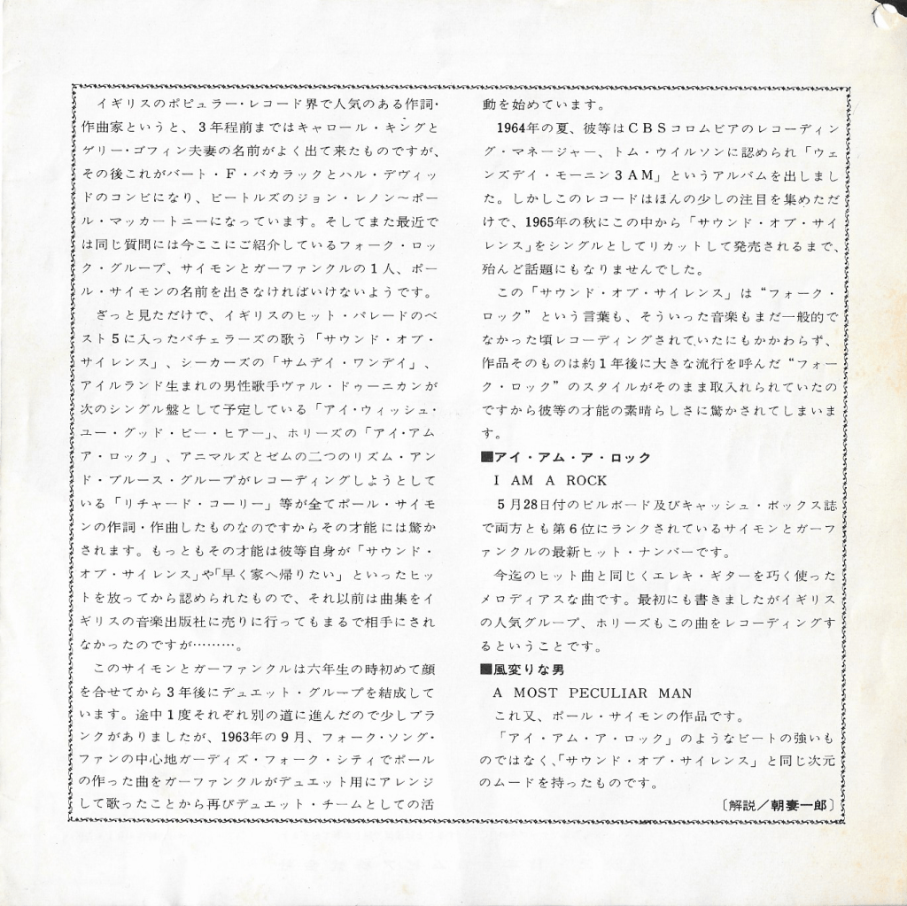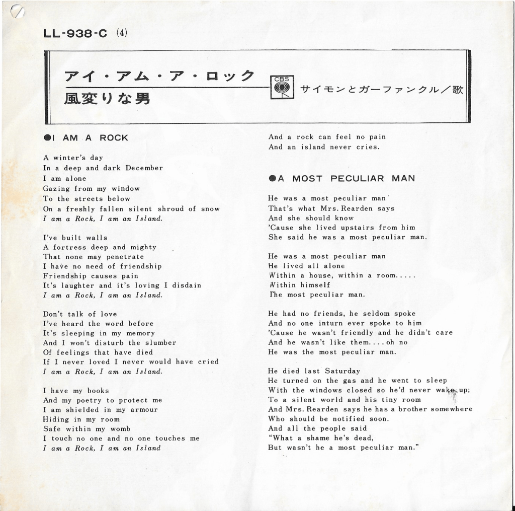 and CBS LL-938-C released in July 1966: I Am A Rock / A Most Peculiar Man