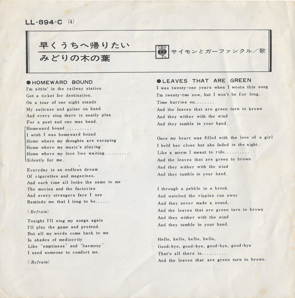 LL-894-C released in March 1966: Homeward Bound / Leaves That Are Green