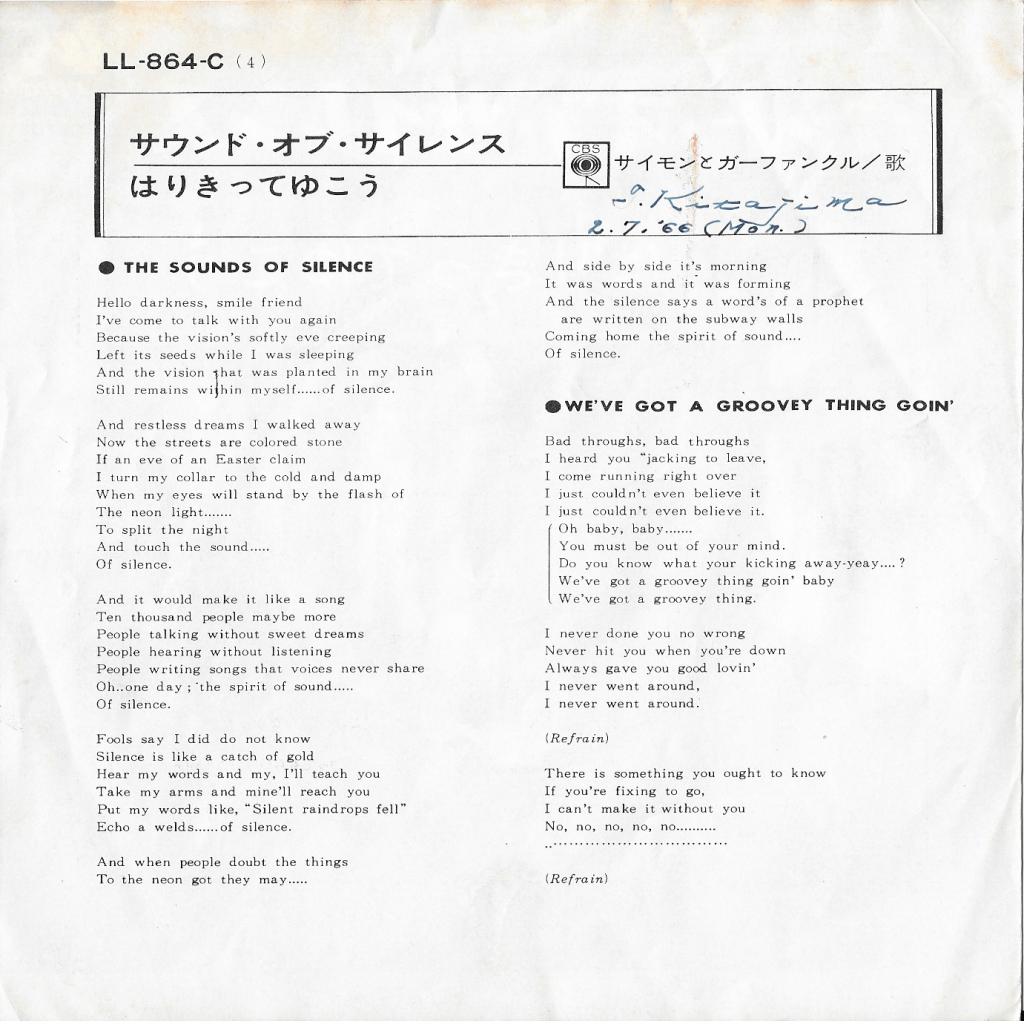 CBS LL-864-C released January 1966: The Sound of silence / We’ve got a groovey thing goin’