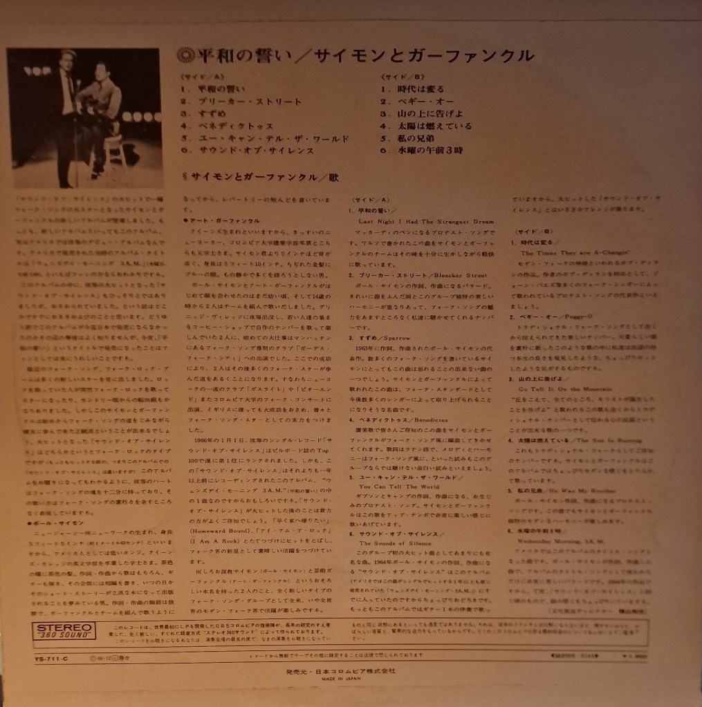 As in most countries outside the USA, the first lp by Simon & Garfunkel that was released was the album ” Sounds of Silence”, in 1966. This album was recorded shortly after immense success of ” The sound of silence” which had become a Numer One hit at the end of 1965.