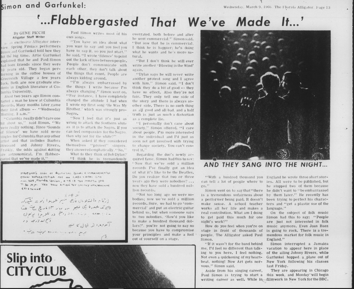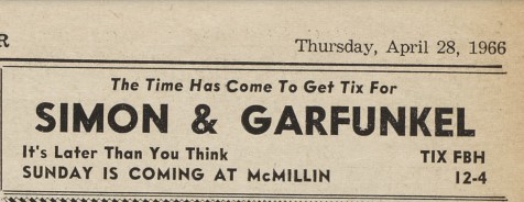 On May 13, 1966, Simon & Garfunkel performed at Vanderbilt University in Nashville, TN.
