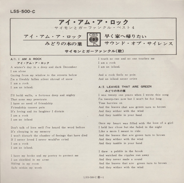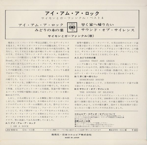CBS LSS-500-C EP released in September 1966: Simon & Garfunkel – I am a rock