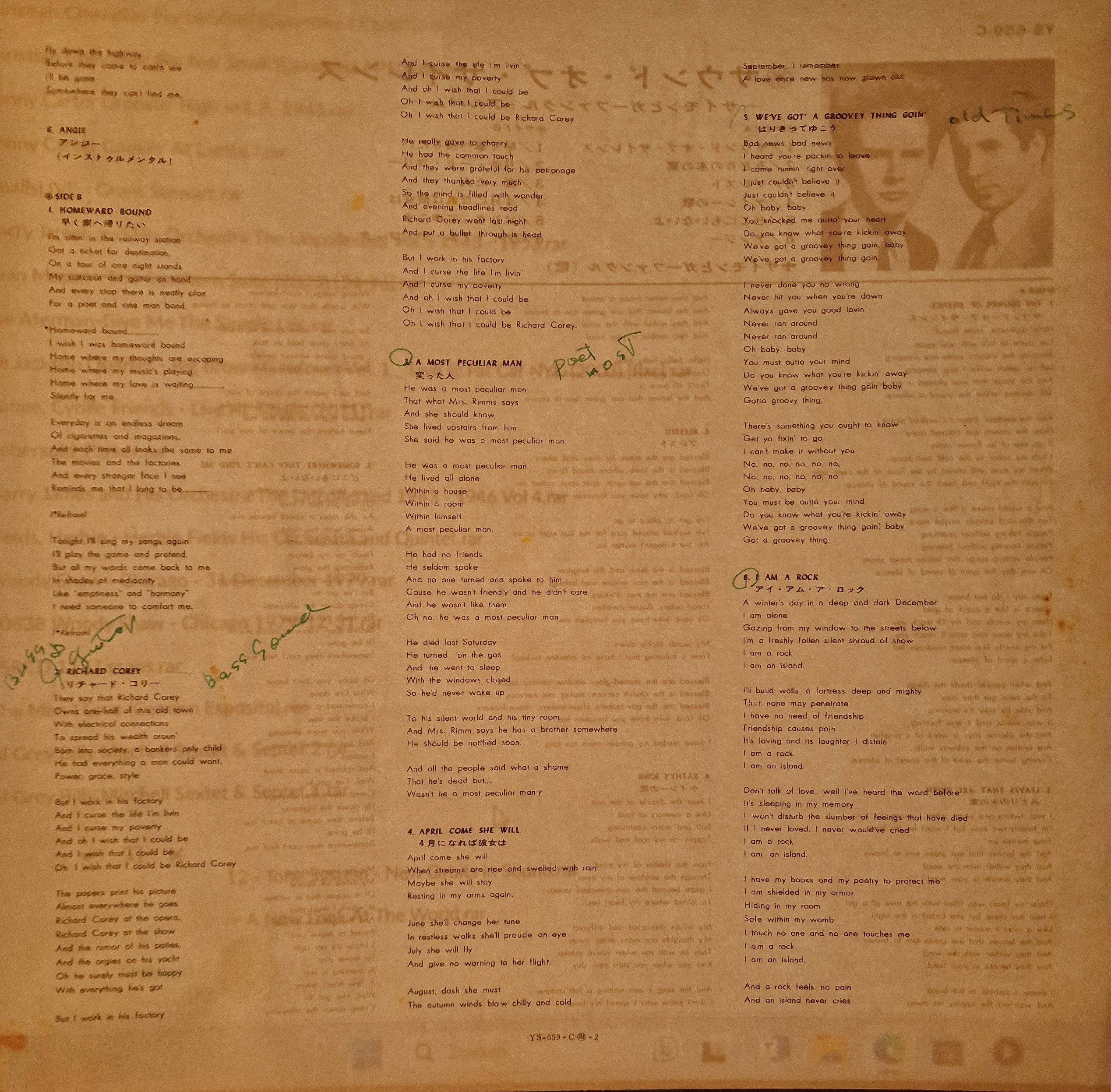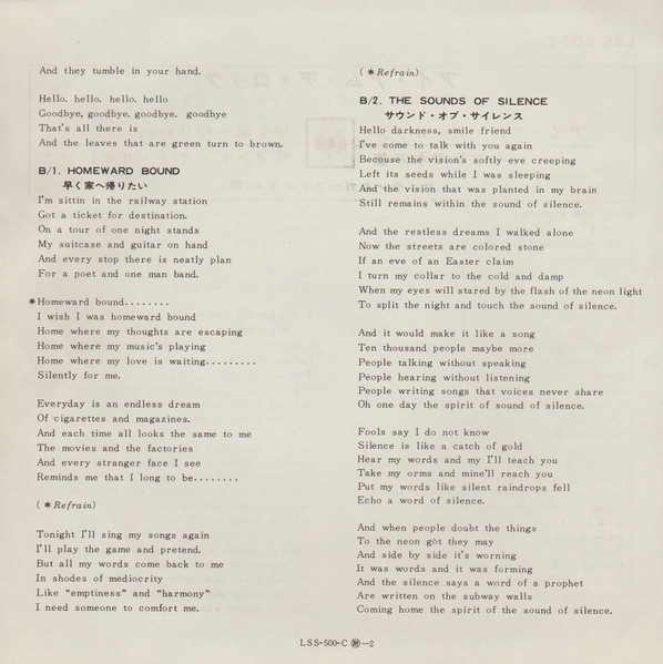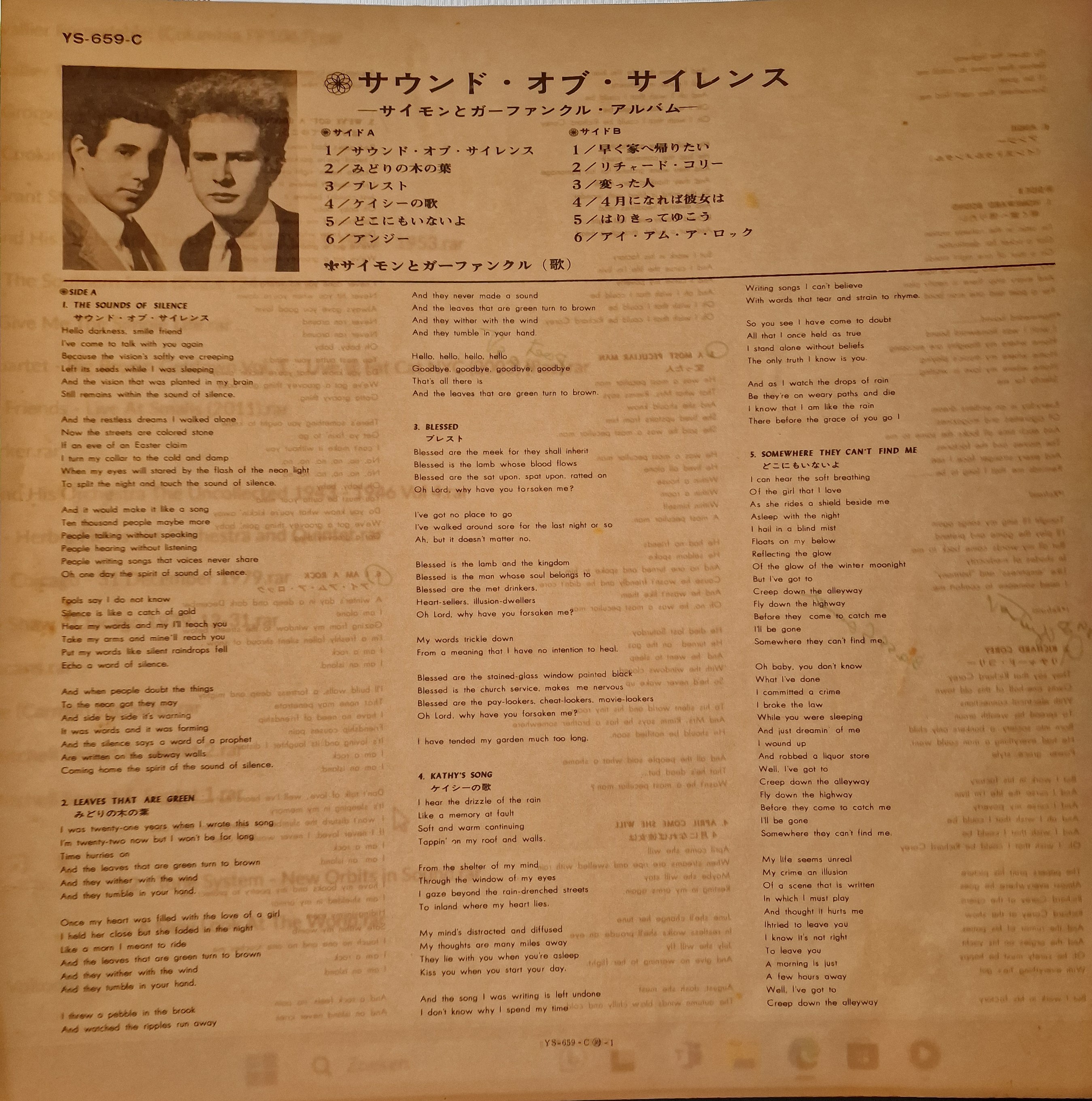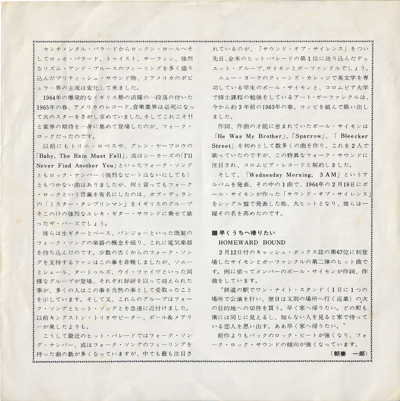 Above pictured is the CBS YS-659-C released In Japan in August 1966.It came with OBI and had a sheet with the lyrics: