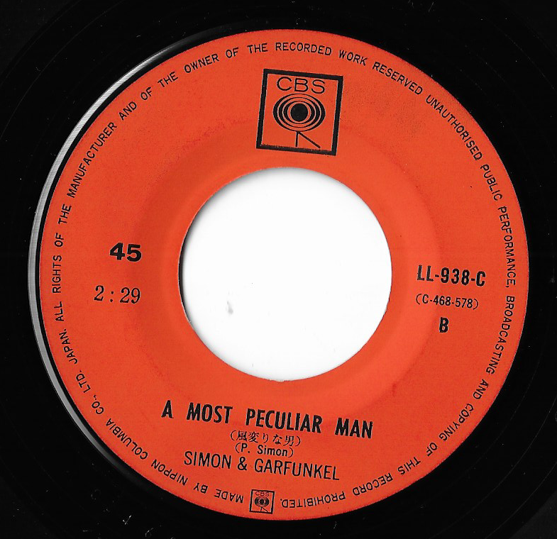 and CBS LL-938-C released in July 1966: I Am A Rock / A Most Peculiar Man