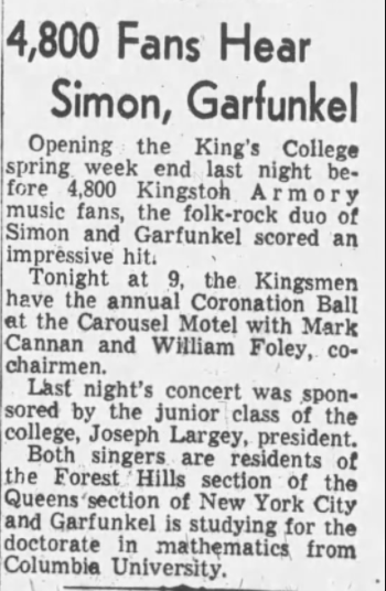 On May 5, 1967, Simon & Garfunkel played at Princeton University. In the May 11 review published in the Evening Times Trenton in new Jersey, according to the pictures Paul Simon was interviewed by Carol Ehrlich, but named Garfunkel. An almost memorable interview followed. And Joe Rubloedky his manager? Anyway, read for yourselves: