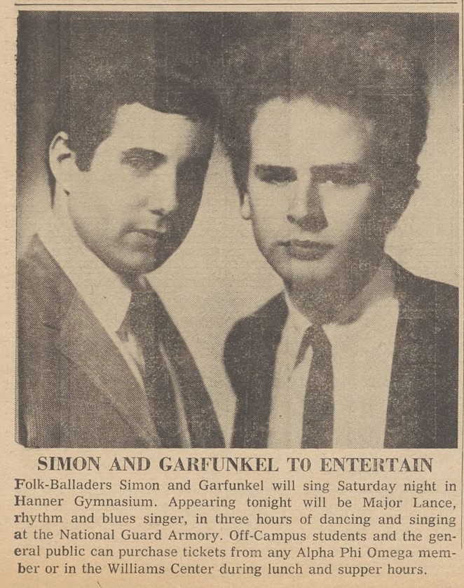 With thanks to Joe McMichael we were happy to get the info in 2013 that Simon & Garfunkel appeared in Indiana, in the state of Pennsylvania.
